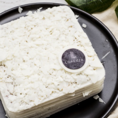 Torta de láminas de chocolate blanco rellenas con delicioso manjar artesanal